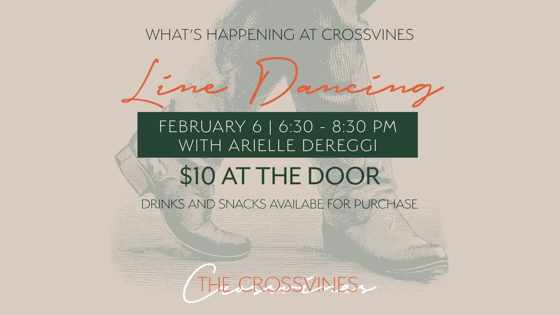 Line dancing lovers, unite! 🌟 Join us at The Crossvines for a lively evening of music, steps, and laughter. Whether you’re a beginner or a pro, it’s the perfect way to get moving and meet your neighbors.