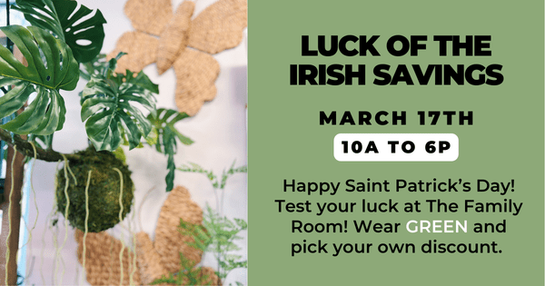 Luck of the Irish Savings Mar 17 2026 Mar 17 2026 Additional Dates Mar 17 2026, 10:00 am-6:00 pm The Family Room 6820 Olney Laytonsville Road Gaithersburg Maryland 20882 10:00 am 6:00 pm Happy Saint Patrick’s Day! Test your luck at The Family Room! Wear GREEN and pick your own discount. You could win up to 50% Off an Item! *Exclusions Apply Arts + Culture Entertainment Food + Drink Main Street Experiences Event Website Audience Type: 18+21+Family FriendlyLGBTQIA+ Free Ticket Link Map Directions Previous Next Related Listings Boutique Shop Shopping The Family Room Laytonsville The Family Room is a gathering place; a place to call home. We offer coffee, ice cream, small bites, and Read more... 253 feet Loading... Related Listings Desserts The Family Room The Family Room is all the best things in life. Coffee & Ice Cream, Maryland made & inspired products, lifestyle Read more... 318 feet Favorite : 10:00 am - 6:00 pmMon10:00 am - 6:00 pmTue10:00 am - 6:00 pmWed10:00 am - 6:00 pmThu10:00 am - 6:00 pmFri10:00 am - 6:00 pmSat10:00 am - 6:00 pmSun12:00 pm - 4:00 pm Loading... All Events Submit an Event
