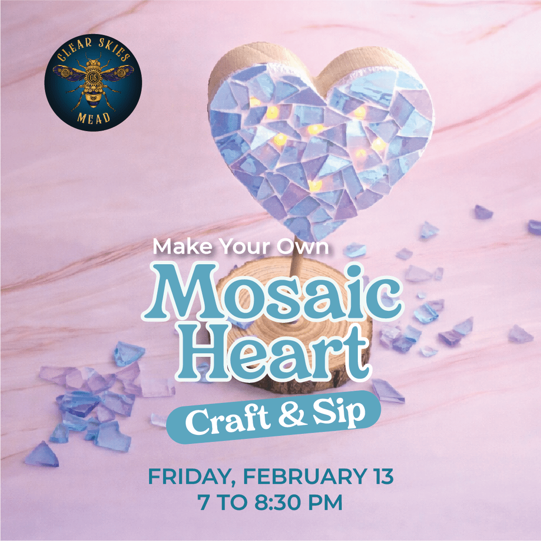 This cozy, beginner-friendly craft night lets you design a beautiful mosaic heart on a wooden stand and add fairy LED lights to make it glow.
